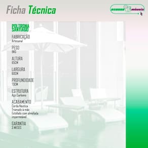 Poltrona Santiago Para área Externa De Corda Náutica Preto/verde A Poltrona Santiago, possui um design artesanal lindo e inovador, deixando seu ambiente ainda mais valorizado. Produzido com material de alta qualidade em aco carbono, conta com assento estofado Impermeavel e espuma D28, alem disso possui acabamento em Corda Nautica, o que proporciona uma adicao excepcional de elegancia ao seu ambiente. Podendo ser usada perto da piscina, no jardim, sala de estar, varanda e onde voce desejar. ESPECIFICACOES TECNICAS: -Material da Estrutura: Aco Carbono; -Material do Enchimento do Assento: Espuma D28; -Material do Encosto: Corda Nautica; -Revestimento do Assento: Impermeavel; -Possui Regulagem de Altura? Nao; -E Giratoria? Nao; -Quantidade de Lugar: 1 Lugar; -Garantia: 3 Meses; -Necessita de Montagem: Nao; -Instrucoes de Cuidado: Limpar com pano umedecido e sabao neutro; -Dimensoes do Produto (LarguraXProfundidadeXAltura): 60x73x65cm; -Conteudo da Embalagem: 01 Poltrona; Marca: ACESSE MÓVEIS