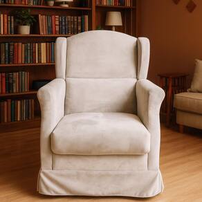 Poltrona Serena para Amamentação Tecido Suede Balanço e Puff