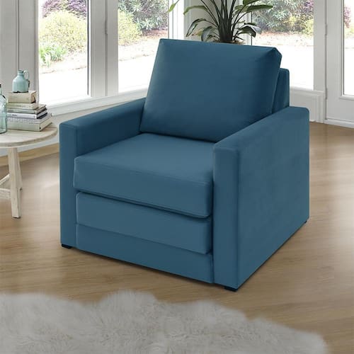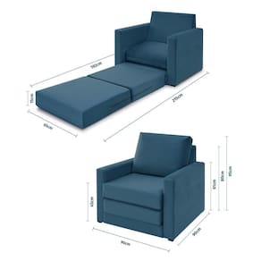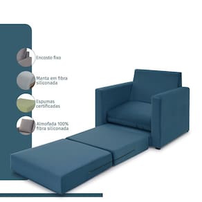 Assentos com espuma flexível de poliuretano densidade 26kg/m, certificada, fabricação própria. Com assento dobráveis, ela abre totalmente virando uma cama. Enchimento do encosto: espuma D-26 e fibra de poliéster siliconada. Estrutura de madeira maciça de pinus e eucalipto 100% reflorestada. Fixação da estrutura: grampos galvanizados anti-ferrugem. Apoiados no chão com sapatas de pvc. Revestimento/tecido: veludo 100% poliéster, com toque macio.