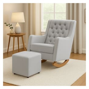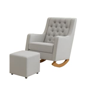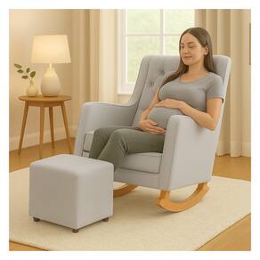 A Poltrona Sofá Cadeira Amamentação Balanço com Puff da marca Bebe e Cia, perfeita para momentos de conforto e aconchego. Com um design Premium, seus pés em madeira maciça de alto padrão na cor caramelo garantem resistência e estilo ao ambiente.