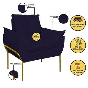 É Reclinável: Não | Desenho Do Tecido: Liso | Acessórios Incluídos: Não | É Sofá-Cama: Não | Estilo: Moderno | Cor Dos Pés: Dourado | Linha: Premium | Material do estofamento: Suede | Unidades Por Kit: 1 | Densidade Da Espuma Do Assento: D-23 | Material De Enchimento Do Encosto: Espuma | Requer Montagem: Não | Altura: 86,5 cm | Marca: Balaqui Decor | Tipo de Garantia: Garantia do Fabricante | Coleção de Antiguidade: Não | Móvel Dobrável: Não | Dimensão (A x L x C): 86,5 x 80 x 61 | Estofado: Suede | de Assentos: 1 | Duração da Garantia: 3 meses | Largura: 80 cm | País de Origem: | Profundidade: 61 cm | Peso do Item (itemWeight): 15 kg | Tipo de produto: Poltrona | Material: Madeira | Fabricante: Balaqui Estofados | Modelo: Poltrona Opala com Pés de Metal | Quantidade de Peças: 1 | Quantidade de caixas de embalagem: 1 | Peso suportado: 180 kg | Material dos pés: Metal | Materiais da estrutura: Madeira | É modular: Não | É Em forma de U: Não | É de canto: Não | É com chaise: Não | Quantidade de Lugares: 1 | Montagem: Montagem Completa Cor: Azul Marinho