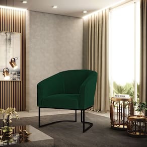 Poltrona Stella Bouclê Base Metálica Industrial Preto - D`Rossi - Verde Musgo