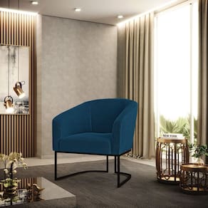 Poltrona Stella Bouclê Base Metálica Industrial Preto - D`Rossi - Azul