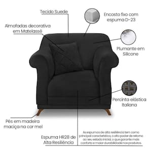 A poltrona Arras tem um toque retro clássico, sua principal característica a versatilidade. Ele se encaixa em qualquer estilo de decoração: na sua casa ou no seu escritório, esse modelo garante beleza e conforto. Feito em madeira de reflorestamento e com suas espumas de alta resiliência tem como principal característica, o alto poder de retorno ao seu estado inicial, o que garante mais conforto e maior durabilidade nos produtos Acompanha Almofadas extras: 01 Acompanha Puff: Não Almofada do assento: Fixa Almofada do encosto: Fixa Altura do assento até o chão: 45 Altura do Encosto: 45 Altura dos Pés: 12 Ambiente Principal: Sala de Estar Complexidade da Montagem: Baixa: pode ser montado por uma pessoa sozinha Cor: Preto Cor do Produto: Preto Design Assinado: Não Enchimento do Assento: Espuma D-28 Enchimento do Braço: Espuma D-26 Enchimento do Encosto: Espuma D-26 Encosto para a Cabeça: Não Estampado: Não Extensível: Não Firmeza do Assento: Macio Informações Complementares: A poltrona Arras tem um toque retro clássico, sua principal característica a versatilidade. Ele se encaixa em qualquer estilo de decoração: na sua casa ou no seu escritório, esse modelo garante beleza e conforto. Feito em madeira de reflorestamento e com Itens Inclusos: 1 Poltrona Linha ou Coleção: Arras Manual de Montagem e Instalação: https://cdn2.madeiramadeira.com.br/atributo/spezzia-decor/1254104-manual-arras-pdf.pdf Material do Braço: estofado Material dos Pés: Madeira Maciça Modelo de Poltrona: Fixo Necessita Montagem: Sim Origem do Produto: Nacional Peso: 27.5 Possui Percintas Elásticas: Sim Possui Pés: 04 Possui Rodízio: Não Recomendações de Uso, Manutenção e Limpeza: Limpeza: Utilize pano levemente úmido Sistema de Montagem: É necessário apenas fixar os pés. Suporta Até (kg): 150 Tecido Predominante: Suede Tipo de Assento: Fixo Tipo de Encosto: Fixo Tipo de Espuma do Assento: Espuma HR Tipo de Poltrona: Decorativa