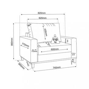 Características: Estrutura em MDP Pés de Madeira Assento com mola bonnel Espuma D23 Encosto fixo Almofada solta de fibra siliconada 100 Suporta até 110kg Revestimento em tecido veludo