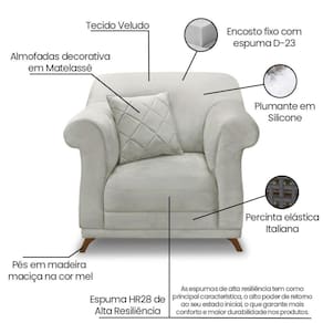 A poltrona Arras tem um toque retro clássico, sua principal característica a versatilidade. Ele se encaixa em qualquer estilo de decoração: na sua casa ou no seu escritório, esse modelo garante beleza e conforto. Feito em madeira de reflorestamento e com suas espumas de alta resiliência tem como principal característica, o alto poder de retorno ao seu estado inicial, o que garante mais conforto e maior durabilidade nos produtos Acompanha Almofadas extras: 01 Acompanha Puff: Não Almofada do assento: Fixa Almofada do encosto: Fixa Altura do assento até o chão: 45 Altura do Encosto: 45 Altura dos Pés: 12 Ambiente Principal: Sala de Estar Complexidade da Montagem: Baixa: pode ser montado por uma pessoa sozinha Cor: Prata Cor do Produto: Prata Design Assinado: Não Enchimento do Assento: Espuma D-28 Enchimento do Braço: Espuma D-26 Enchimento do Encosto: Espuma D-26 Encosto para a Cabeça: Não Estampado: Não Extensível: Não Firmeza do Assento: Macio Informações Complementares: A poltrona Arras tem um toque retro clássico, sua principal característica a versatilidade. Ele se encaixa em qualquer estilo de decoração: na sua casa ou no seu escritório, esse modelo garante beleza e conforto. Feito em madeira de reflorestamento e com Itens Inclusos: 1 Poltrona Linha ou Coleção: Arras Manual de Montagem e Instalação: https://cdn2.madeiramadeira.com.br/atributo/spezzia-decor/1254111-manual-arras-pdf.pdf Material do Braço: estofado Material dos Pés: Madeira Maciça Modelo de Poltrona: Fixo Necessita Montagem: Sim Origem do Produto: Nacional Peso: 27.5 Possui Percintas Elásticas: Sim Possui Pés: 04 Possui Rodízio: Não Recomendações de Uso, Manutenção e Limpeza: Limpeza: Utilize pano levemente úmido Sistema de Montagem: É necessário apenas fixar os pés. Suporta Até (kg): 150 Tecido Predominante: Veludo Tipo de Assento: Fixo Tipo de Encosto: Fixo Tipo de Espuma do Assento: Espuma HR Tipo de Poltrona: Decorativa