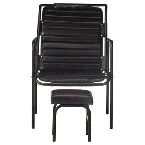 Poltrona relaxante Furniking com apoio para os pés em couro real preto