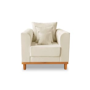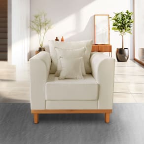 Poltrona Viena Suede - Madeira Prima Deccor Conheça a Poltrona Viena, modelo de referência em elegância e segurança. A Poltrona Viena é um luxo e vai tornar o seu ambiente ainda mais lindo e aconchegante. Conta com almofada no encosto para trazer maior conforto e também acompanha almofadas de decoração para dar aquele toque final de bom gosto e sofisticação. O seu design é incrível para todos os ambientes, sua base e pés de madeira trazem a sustentação necessária e o tecido de alta qualidade fazem dele a combinação ideal para o seu ambiente! Dimensões do Produto Altura total: 77cm Largura total: 80cm Profundidade total: 80cm Altura do encosto: 34 cm Largura do assento: 50cm Profundidade do assento: 63 cm Altura do chão ao assento: 46 cm Espessura do assento: 17 cm Tamanho dos pés: 13 cm Altura do chão ao braço: 70 cm Altura interna do braço: 25 cm Espessura do braço: 15 cm Peso: 30 kg Especificações do Produto Estrutura: Madeira Eucalipto Espuma: D23 Tecido: Suede Tipo de pés: Pés Trapézio Peso Suportado: 130kg Garantia: 90 dias contra defeito de fabricação Montagem: O produto vai montado, apenas rosquear os pés Instruções de Limpeza: Utilizar um pano úmido com sabão neutro. Você irá receber: 01 Poltrona em 01 volume Observações Importantes: Todos os produtos vão embalados com total segurança; As cores dos produtos podem sofrer alterações dependendo do seu monitor; Para futuras compras, não garantimos a mesma tonalidade de cor, pois existe variação a cada lote do fabricante do tecido; As imagens são meramente ilustrativas, não acompanham objetos de decoração e eletros; Confira as dimensões do produto no momento da compra e certifique-se de que passará normalmente por escadas, elevadores, portas e corredores; Importante: Por se tratar de estofado as medidas podem ter uma pequena variação em até 3 cm; Não nos responsabilizamos no ato da entrega por montagens, desmontagens, instalações de produtos; Não nos responsabilizamos no ato da entrega por subir escadas, elevadores, nem utilização de guinchos ou equipamentos similares para acesso a pisos superiores em apartamentos; A entrega do produto é realizada em todo território nacional, até onde as rodovias alcançam, entregas fluviais ou aéreas devem ser cotadas a parte; Observando as orientações acima, evita-se futuros desagrados ou imprevistos com a entrega do produto. Havendo despesas adicionais, serão de responsabilidade do cliente; Marca: Madeira Prima Deccor