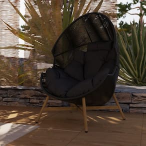"Poltrona Oval Almofadada para Jardim e Varanda Athys Naterial – Preto, 160kg