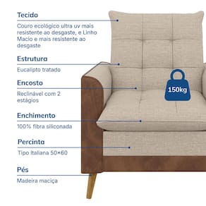 Com estrutura em eucalipto tratado e percinta italianas, a poltrona proporciona resistência e durabilidade, além de um suporte firme e confortável. Os pés em madeira maciça oferecem um toque refinado e robustez. Acompanhada de um puff para apoio dos pés, a Poltrona Luxor é a escolha ideal para quem busca uma peça versátil, que transforma-se facilmente em cama e proporciona momentos de descanso completos.