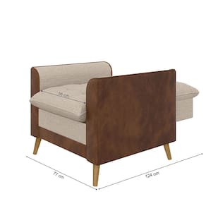 Poltrona York c/ Puff em Linho com Detalhes Courino e Fibras de Silicone Just Time - Bege | Marrom