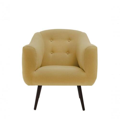 Poltrona fabricada em madeira de eucalipto, revestida com espuma D28 e tecido, detalhes de botonê em seu encosto. Pés em madeira tauari. Poltrona com estilo retrô, charmosa e elegante, deixará o seu ambiente e sua decoração ainda mais belos.
