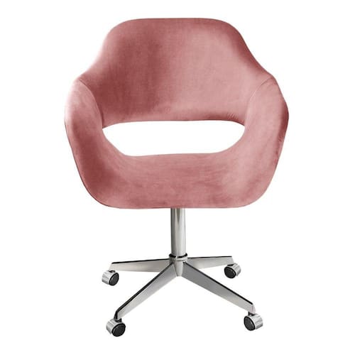 Poltrona Zara Cadeira Giratória com Rodinhas Decoração Escritório Home Office - Rosê