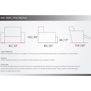 BENEFÍCIOS GERAIS POLTRONA E SOFÁ Garantia Poltrona e Sofá - 3 meses Suporte de Peso Poltrona e Sofá - 100 Kg Nossa Avaliação Poltrona e Sofá - Qualidade Muito Boa