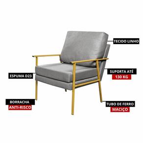 A Poltrona Mona, da Zinn Móveis, une design refinado e conforto excepcional em um móvel versátil. Os pés em ferro maciço garantindo solidez e estabilidade, combinados com o revestimento em linho, que traz leveza e sofisticação para decorar diversos espaços. O assento utiliza espuma D23, proporcionando suporte firme sem abrir mão do relaxamento. Com capacidade para suportar até 130kg, a peça assegura segurança e longevidade.