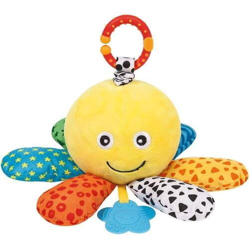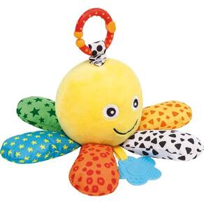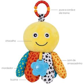 Macio e com cores vibrantes, estimula a visão, a audição e o tato. Possui mordedor, ideal para aliviar o desconforto causado pelo nascimento dos primeiros dentinhos.