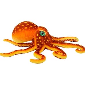 Bichinho de pelúcia no formato de um polvo laranja realista de 36 cm de comprimento.