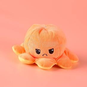 Polvo Reversível De Pelúcia Feliz E Bravo Laranja E Amarelo