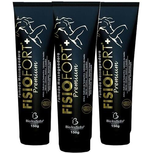 POMADA MASSAGEADORA FISIOFORT PREMIUM 150G KIT com 36 UNID BIO INSTINTO Pomada Massageadora Fisiofort Premium A pomada massageadora é um produto cosmético elaborado com extratos vegetais típicos da flora Brasileira. Sua função é promover relaxamento corporal e auxiliar no alívio da sensação de cansaço após exercícios físicos, má postura ou esforço exagerado, através da combinação da Arnica, Essência de Terebentina, Salicilato de Metila, Mentol, Cânfora, Mastruz e Copaíba. Resultados observados por testes clínicos inspecionados por Médicos Dermatologistas e percepção de eficácia realizada por Fisioterapeuta e profissionais de Educação Física. Indicação: Dores musculares, contusões, luxações, tendinite e bursite. Benefícios: Sensação térmica instantânea, relaxante corporal, aquecimento prolongado. Modo de Usar: Aplicar sobre a pele com auxílio de massagens constantes até completa absorção.