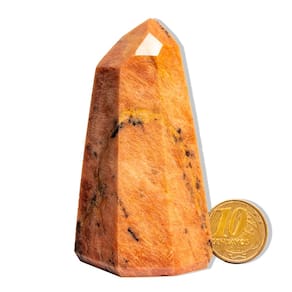 A classificação Tipo B indica peças naturais com possíveis marcas, pequenas fraturas ou imperfeições — características autênticas que reforçam sua beleza natural sem afetar suas propriedades energéticas. Detalhes da Peça Nome da Pedra: Amazonita Rosa NaturalCor: Rosa suave com possíveis nuances esverdeadas ou clarasFormato: Ponta lapidada com base retaCorte: Lapidado – faces polidas com brilho sutilClaridade: Opaco a semiopaco, com textura naturalmente delicadaPeso: 200 a 300g (aproximadamente)Medidas: De 11 a 12cm de altura (podendo variar)Classificação: Tipo B – com possíveis imperfeições naturais Destaques Energéticos