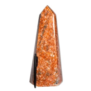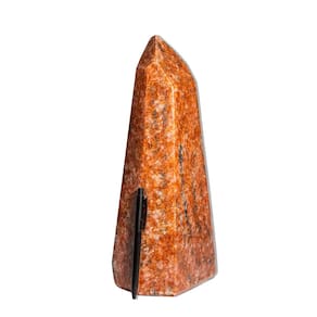 Aprecie a beleza única da Ponta de Pedra Calcita Laranja, com suas cores vibrantes e energizantes, perfeita para adicionar um toque de cor e energia a qualquer ambiente!