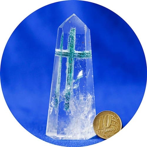 Ponta de Quartzo Cristal Transparente com Cruz Artificial, pedra de extra qualidade, lapidação gerador sextavado excelente para decoração e armonização de ambientes sala de estar, banheiro, dormitório Elimina energia pesada. Energia Negativa excelente pra limpar ambientes carregados NOME DAS PEDRAS: Quartzo CristalCOR DAS PEDRAS: Cristal Hialino ExtraTransparênciaCORTE DAS PEDRAS: Ponta Gerador Base, 6 facetas unidas em apice com Cruz ArtificialCLARIDADE DAS PEDRAS: Cristalizado Semi transparenteMEDIDA DAS PEDRAS: 8,5 x 3,3 CentimetrosPESO TOTAL DA PEDRA: 82,3 Gramas ORIGEM: BRASIL OBS: Por ser pedra natural podem apresentar variações em suas tonalidades e grafismos Há também a possibilidade de ocorrerem pequenas inclusões que irão se assemelhar a fissuras, mas que são normais de minerais autentico de garimpo. Hidratação oleo mineral.NOTA: Tenha nota que a Cruz é Artificial, feita em resina colorida preenchendo uma fissura feita na mesma. CRISTAIS GERADORESSão cristais isolados Possuem seis faces unidas num ápice e podem apresentar base nebulosa e ápice límpido São úteis na canalização de energia curativa e são ótimos acumuladores de luz, que é projetada pela pontaOs Cristais Geradores promovem a concentração, intensificam e dirigem a energia entre chacras, bastandose apontar seu ápice para os mesmos, promovendo dessa forma, sua purificação ou renovação energética Também são ótimos para movimentação energética em ambientesPodemos encontrar, ainda, Cristais Geradores de Ametista, Citrino e Quartzo Enfumaçado Marca: CristaisdeCurvelo