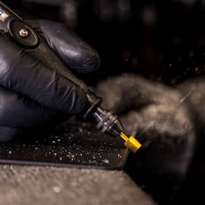 - Deixe o acessório e sua ferramenta Dremel fazerem o trabalho sem aplicar muita força ou pressão. Para um resultado eficaz, use as laterais da cabeça do acessório em um ângulo de menos de 90 graus. Você percebe que o acessório, ao invés de remover material, produz vibrações? Aumente a velocidade da ferramenta até que o corte fique liso. Antes de iniciar seu projeto DIY, dê uma olhada no ícone ou no vídeo para verificar o resultado ou teste um material que você não usará.
