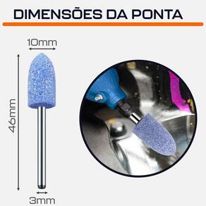 Ponta montada 10mm tipo bala rebolo abrasivo azul haste 3mm para micro retíficas dremax - marca: dremax - referência: pm051 - diâmetro da haste: 3mm - diâmetro da ponta: 10mm - altura da ponta: 16mm - comprimento total: 46mm - formato: bala cônica - as pontas montadas azuis permitem um acabamento mais fino que as tradicionais pontas rosas - material da ponta: óxido de alumínio zircônia azul corundum - indicada para limpezas e acabamentos em superfícies - uso em micro retíficas de qualquer marca com mandril de 3mm - indicada para afiação, esmerilhamento e desbaste em metais, joias, pedras preciosas, vidro, entre outros materiais - seu formato facilita o trabalho em locais de difícil acesso - : 90 dias contra defeitos de fabricação a dremax é a primeira e única marca brasileira dedicada exclusivamente às micro retíficas, acessórios e acoplamentos para esta indispensável ferramenta. Seja para trabalhos de precisão, artesanato, modelagem ou reparos, a dremax tem o produto certo para você Como identificar a melhor ponta montada para você - ponta montada amarela: alta dureza para polimento fino - ponta montada azul: :alta dureza para acabamento médio - ponta montadas rosa: alta dureza e tenacidade acabamento grosso - ponta montada borracha verde: flexível, para retificação e polimento precisos - ponta montada de couro: desempenho melhor do que a ponta de borracha verde, também ideal para polimento - ponta montada borracha com abrasivos: retificação mais nítida e rápida - ponta montada de feltro: polimento fino em metais e materiais não metálicos Marca: Não Informado