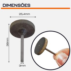 - Marca: Dremax - Referência: PM014 - Diâmetro da cabeça: 25,4mm 1 Pol. - Diâmetro da haste: 3mm - Comprimento total: 38mm - Gramatura: Grão 220 - Uso em micro retíficas de qualquer marca com pinça de 3mm - Indicado para desbaste e acabamento - Amplamente utilizado em moagem, molde, equipamentos médicos, equipamentos de beleza, manicure, ouro e prata jóias, aço inoxidável, vidro equipamentos, peças de máquinas e outros processos - Garantia: 90 dias contra defeitos de fabricação