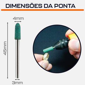 Ponta Montada Cônica 4mm de Borracha Abrasiva Haste 3mm para Micro Retifica Dremax - Marca: Dremax - Referência: PM056 - Diâmetro da cabeça: 4mm - Diâmetro da haste: 3mm - Comprimento total: 45mm - Gramatura: Grão 180 - Material da ponta: Borracha - Material da haste: aço inox - Pontas montadas de borracha Flexível, para retificação e polimento precisos - Uso em micro retíficas e mini lixadeiras de qualquer marca com mandril de 3mm - Seu formato facilita o trabalho em locais de difícil acesso - Uso em micro retíficas de qualquer marca com pinça de 3mm - Indicado para desbaste e semi-acabamento - Remoção de ferrugem de metal enferrujado, tratamento em joias e pré-acabamento em pedras, ouro e prata - Amplamente utilizado em moagem, molde, equipamentos médicos, equipamentos de beleza, manicure, ouro e prata jóias, aço inoxidável, vidro equipamentos, peças de máquinas e outros processos - Muito menos agressivo que tubos de lixa e pontas montadas rosa - Muito utilizado na primeira etapa no processo de polimento - : 90 dias contra defeitos de fabricação A DREMAX é a primeira e única marca brasileira dedicada exclusivamente às micro retíficas, acessórios e acoplamentos para esta indispensável ferramenta. Seja para trabalhos de precisão, artesanato, modelagem ou reparos, a DREMAX tem o produto certo para você. Marca: Não Informado Ean: 7734625987103