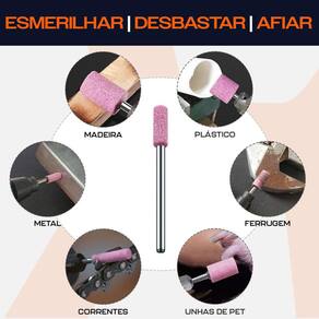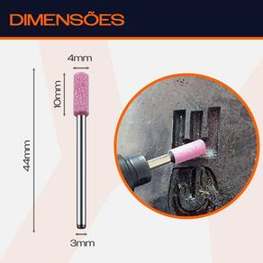 Ponta Montada 4mm Cilíndrica Rebolo Abrasivo Rosa Haste 3mm para Micro Retíficas Dremax