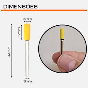 Ponta Montada Amarela 5mm Abrasiva Desbaste Fino Haste 3mm para Micro Retifica Dremax