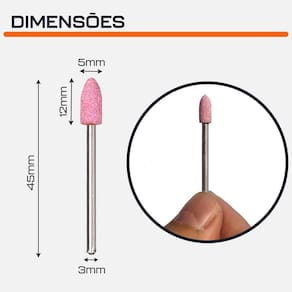 Ponta Montada 5 x 12mm Rebolo Rosa Bala para Micro Retíficas Haste 3mm Dremax