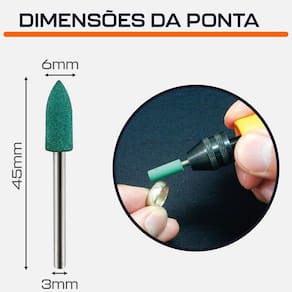 Ponta Montada Cônica 6mm de Borracha Abrasiva Haste 3mm para Micro Retifica Dremax - Marca: Dremax - Referência: PM058 - Diâmetro da cabeça: 6mm - Diâmetro da haste: 3mm - Comprimento total: 45mm - Gramatura: Grão 180 - Material da ponta: Borracha - Material da haste: aço inox - Pontas montadas de borracha Flexível, para retificação e polimento precisos - Uso em micro retíficas e mini lixadeiras de qualquer marca com mandril de 3mm - Seu formato facilita o trabalho em locais de difícil acesso - Uso em micro retíficas de qualquer marca com pinça de 3mm - Indicado para desbaste e semi-acabamento - Remoção de ferrugem de metal enferrujado, tratamento em joias e pré-acabamento em pedras, ouro e prata - Amplamente utilizado em moagem, molde, equipamentos médicos, equipamentos de beleza, manicure, ouro e prata jóias, aço inoxidável, vidro equipamentos, peças de máquinas e outros processos - Muito menos agressivo que tubos de lixa e pontas montadas rosa - Muito utilizado na primeira etapa no processo de polimento - : 90 dias contra defeitos de fabricação A DREMAX é a primeira e única marca brasileira dedicada exclusivamente às micro retíficas, acessórios e acoplamentos para esta indispensável ferramenta. Seja para trabalhos de precisão, artesanato, modelagem ou reparos, a DREMAX tem o produto certo para você. Marca: Dremax Ean: 7734625987066