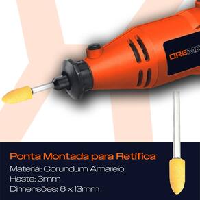 Ponta Montada Amarela 6mm Cônica Abrasiva Desbaste Leve Haste 3mm para Micro Retifica Dremax - Marca: Dremax - Referência: PM017 - Diâmetro da cabeça: 6mm - comprimento da cabeça: 14mm - Comprimento total: 44mm - Formato: Cônica - Diâmetro da haste: 3mm - Gramatura: Grão 240 - Material da ponta: Óxido de alumínio Amarelo Corundum Premium - As pontas montadas AMARELAS são indicadas para uso geral, com resultado mais fino que as tradicionais pontas rosas - Uso em micro retíficas de qualquer marca com pinça de 3mm - Indicada para desbaste e pré-acabamento em metais, joias, pedras preciosas, vidro, entre outros materiais - Muito utilizada por ourives, relojoeiros, hobbistas e dentistas para desbastar e retificar peças em geral - Seu formato facilita o trabalho em locais de difícil acesso - : 90 dias contra defeitos de fabricação A DREMAX é a primeira e única marca brasileira dedicada exclusivamente às micro retíficas, acessórios e acoplamentos para esta indispensável ferramenta. Seja para trabalhos de precisão, artesanato, modelagem ou reparos, a DREMAX tem o produto certo para você. Marca: Não Informado Ean: 7734625992930