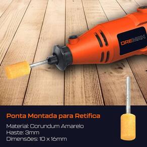 - Marca: Dremax - Referência: PM012 - Diâmetro da cabeça: 10mm - Comprimento total: 46mm - Formato: Cilíndrica - Diâmetro da haste: 3mm - Gramatura: Grão 240 - Material da ponta: Óxido de alumínio Amarelo Corundum Premium - As pontas montadas AMARELAS são indicadas para uso geral, com resultado mais fino que as tradicionais pontas rosas - Uso em micro retíficas de qualquer marca com pinça de 3mm - Indicada para desbaste e pré-acabamento em metais, joias, pedras preciosas, vidro, entre outros materiais - Muito utilizada por ourives, relojoeiros, hobbistas e dentistas para desbastar e retificar peças em geral - Seu formato facilita o trabalho em locais de difícil acesso - Garantia: 90 dias contra defeitos de fabricação