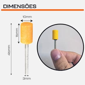 Ponta Montada Amarela 10mm Abrasiva Desbaste Fino Haste 3mm para Micro Retifica Dremax