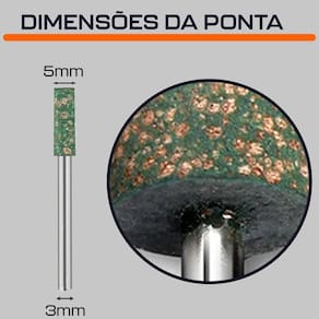 Ponta Montada Cilíndrica 5mm Borracha Abrasiva Gergelim Haste 3mm para Micro Retifica Dremax - Marca: Dremax - Referência: PM082 - Diâmetro da cabeça: 5mm - Diâmetro da haste: 3mm - Gramatura: Grão 180 - Material da ponta: Borracha Abrasiva Gergelim - Material da haste: aço inox - Pontas montadas de borracha Flexível, para retificação e polimento precisos - Uso em micro retíficas e mini lixadeiras de qualquer marca com mandril de 3mm - Seu formato facilita o trabalho em locais de difícil acesso - Indicado para desbaste, semi-acabamento e polimento, dependendo do material - Pontas montadas de borracha com abrasivos são maleáveis, porém com alto pode de desbaste devido os seus abrasivos - Seu formato facilita o trabalho em locais de difícil acesso - Garantia: 90 dias contra defeitos de fabricação A DREMAX é a primeira e única marca brasileira dedicada exclusivamente às micro retíficas, acessórios e acoplamentos para esta indispensável ferramenta. Seja para trabalhos de precisão, artesanato, modelagem ou reparos, a DREMAX tem o produto certo para você. Marca: Dremax