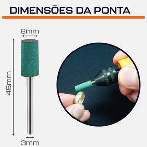 Ponta Montada Cilíndrica 8mm de Borracha Abrasiva Haste 3mm para Micro Retifica Dremax - Marca: Dremax - Referência: PM054 - Diâmetro da cabeça: 8mm - Diâmetro da haste: 3mm - Comprimento total: 45mm - Gramatura: Grão 180 - Material da ponta: Borracha - Material da haste: aço inox - Pontas montadas de borracha Flexível, para retificação e polimento precisos - Uso em micro retíficas e mini lixadeiras de qualquer marca com mandril de 3mm - Seu formato facilita o trabalho em locais de difícil acesso - Uso em micro retíficas de qualquer marca com pinça de 3mm - Indicado para desbaste e semi-acabamento - Remoção de ferrugem de metal enferrujado, tratamento em joias e pré-acabamento em pedras, ouro e prata - Amplamente utilizado em moagem, molde, equipamentos médicos, equipamentos de beleza, manicure, ouro e prata jóias, aço inoxidável, vidro equipamentos, peças de máquinas e outros processos - Muito menos agressivo que tubos de lixa e pontas montadas rosa - Muito utilizado na primeira etapa no processo de polimento - Garantia: 90 dias contra defeitos de fabricação A DREMAX é a primeira e única marca brasileira dedicada exclusivamente às micro retíficas, acessórios e acoplamentos para esta indispensável ferramenta. Seja para trabalhos de precisão, artesanato, modelagem ou reparos, a DREMAX tem o produto certo para você. Marca: Dremax