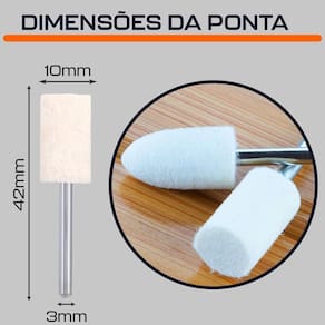 Ponta Montada de Feltro 10mm Cilíndrica Haste 3mm para Polimento com Micro Retíficas Dremax - Marca: Dremax - Referência: PM075 - Diâmetro da Ponta: 10mm - Comprimento: 42mm - Diâmetro da haste das pontas: 3mm - Indicado para polimentos - Formato: Cilíndrica - Uso em micro retíficas de qualquer marca que suporte prender hastes de 3mm - Para polir metais e plásticos em superfícies planas ou orifícios - Indicada para polimento de metais ferrosos ou não ferrosos, aço, aço inoxidável, alumínio, bronze, cobre, latão e plástico em geral - Garantia: 90 dias contra defeitos de fabricação A DREMAX é a primeira e única marca brasileira dedicada exclusivamente às micro retíficas, acessórios e acoplamentos para esta indispensável ferramenta. Seja para trabalhos de precisão, artesanato, modelagem ou reparos, a DREMAX tem o produto certo para você. Marca: Dremax