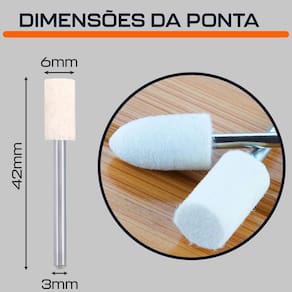 Ponta Montada de Feltro 6mm Cilíndrica Haste 3mm para Polimento com Micro Retíficas Dremax - Marca: Dremax - Referência: PM073 - Diâmetro da Ponta: 6mm - Comprimento: 42mm - Diâmetro da haste das pontas: 3mm - Indicado para polimentos - Formato: Cilíndrica - Uso em micro retíficas de qualquer marca que suporte prender hastes de 3mm - Para polir metais e plásticos em superfícies planas ou orifícios - Indicada para polimento de metais ferrosos ou não ferrosos, aço, aço inoxidável, alumínio, bronze, cobre, latão e plástico em geral - Garantia: 90 dias contra defeitos de fabricação A DREMAX é a primeira e única marca brasileira dedicada exclusivamente às micro retíficas, acessórios e acoplamentos para esta indispensável ferramenta. Seja para trabalhos de precisão, artesanato, modelagem ou reparos, a DREMAX tem o produto certo para você. Marca: Dremax