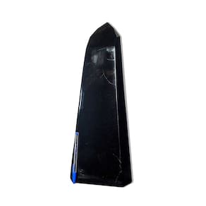 Obsidiana Negra Bruta com Ponta Sextavada – 13,15kg | Pedra Vulcânica de Proteção e Autoconhecimento Poderosa, misteriosa e autêntica, esta Obsidiana Negra é uma verdadeira joia da natureza. Formada pelo resfriamento rápido da lava vulcânica, essa pedra com brilho vítreo intenso é ideal para quem busca proteção espiritual, introspecção e ancoramento energético. Detalhes Técnicos:\nNome da Pedra: Obsidiana Negra\nCor: Preto Brilhante\nFormato: Ponta sextavada com acabamento bruto\nDimensões Aproximadas: 47 x 9 cm\nPeso: 13,15 kg\nOrigem: Curvelo, Minas Gerais – Brasil (Fonte confiável: CristaisdeCurvelo)\nPropriedades Energéticas e Espirituais:\nProteção energética intensa: Dissolve energias negativas e afasta influências indesejadas\nIntrospecção e clareza mental: Ideal para meditação profunda e autoconhecimento\nConexão com o elemento fogo e terra: Pedra formada em lava, traz força bruta e enraizamento\nIndicada para terapeutas e espaços de regeneração: Auxilia em limpezas espirituais e ancoramento\nObservações Importantes:  \nPonta sextavada com marcas naturais: Esta peça foi esculpida a partir de uma pedra bruta aproveitada ao máximo, mantendo jaças (fraturas naturais da pedra), o que não compromete sua integridade ou beleza — pelo contrário, realça seu caráter autêntico e rústico.\nPor ser um mineral 100% natural, pode conter inclusões, fissuras ou variações de tonalidade. Essas características são normais e valorizadas entre colecionadores e praticantes de cristaloterapia.