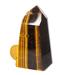 Essa ponta gerador de Olho de Tigre é uma pedra poderosa contra energias negativas. Ideal para quem busca força interior, foco e determinação no dia a dia. Nome da Pedra: Olho de TigreCor: Marrom com rajas pretas (variações naturais)Formato: Mini ponta gerador sextavadoTamanho Aproximado: 60 a 70 mmPeso Aproximado: 100 a 200 gramasClareza: Com brilho e sem transparênciaOrigem: Curvelo – MG (garimpo) Propriedades do Olho de Tigre\nPedra de proteção contra inveja e energias densas\nEstimula coragem, foco e autoconfiança\nUtilizada para fortalecer decisões e manter equilíbrio emociona\nOtima para carregar no bolso, altar ou mesa de trabalho\nObservação:Produto 100% natural, podendo apresentar variações nas tonalidades, grafismos e pequenas inclusões típicas de minerais de garimpo.Hidratada com óleo mineral para realçar o brilho.Compre apenas se estiver ciente das características naturais desta pedra! Marca: Não Informado