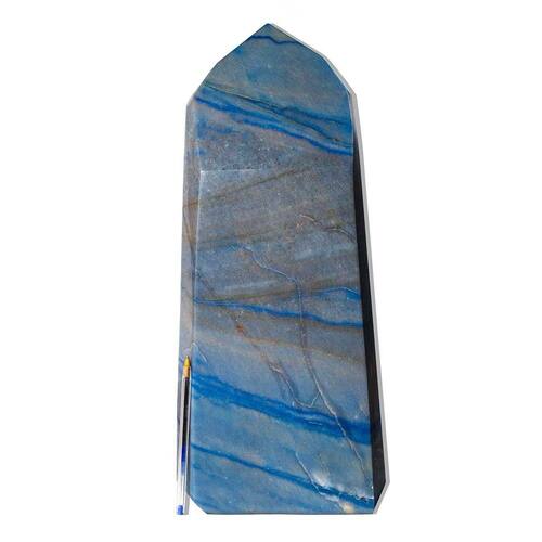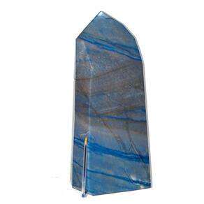 A Ponta de Quartzo Azul é uma pedra preciosa rara e única, com uma cor azul esta peça não só adiciona um toque sofisticado à sua decoração, mas também traz benefícios incríveis para sua vida, proporcionando proteção, serenidade e energia positiva. Características da Ponta de Quartzo Azul:\nNome da Pedra: Quartzo Azul Cor: Azul (Foto Ilustrativa) Corte: Ponta Sextavada (Gerador) Claridade: Denso e Brilhoso Medidas Aproximadas: 44 x 21 x 14cm Peso: 18,3Kg Origem: Brasil Hidratação: Tratamento com óleo mineral, preservando as propriedades naturais da pedra\nCuidado e Autenticidade: Por ser uma pedra natural, o quartzo azul pode apresentar variações de tonalidade e pequenas inclusões, que são características normais de minerais autênticos de garimpo. Essas imperfeições tornam cada peça única e especial. Conclusão: A ponta de Quartzo Azul é mais do que uma simples decoração. Ela é um amuleto de proteção e serenidade, trazendo benefícios espirituais e emocionais, enquanto enriquece seu ambiente com uma aura de beleza e harmonia. Adquira a sua agora e traga a paz e a proteção do Quartzo Azul para o seu dia a dia. Marca: Não Informado