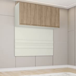 Diferenciais: Puxador em alumínio, dobradiças metálicas, detalhe ripado em aplique alto relevo, para cama box de 1,38 e 1,58m.