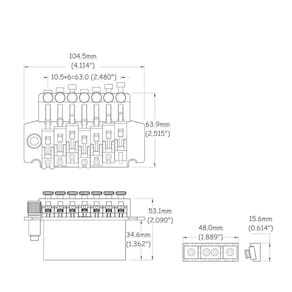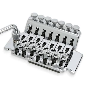 Ponte com Sistema Trêmolo completo com Micro Afinação para Guitarra de 7 Cordas com acabamento cromado, estilo Floyd Rose com Travamento Duplo, Spirit Guitar Parts - FRT70-CR. - Ponte estilo Floyd Rose com travamento duplo para guitarra de 7 Cordas - Alavanca removível e rosqueável - Bloco em aço - Lock Nut 48.0mm - Inclui: alavanca, mola, presilhas e chave allen