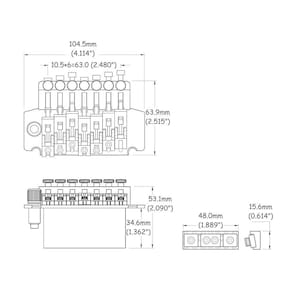 Ponte com Sistema Trêmolo completo com Micro Afinação para Guitarra de 7 Cordas com acabamento dourado, estilo Floyd Rose com Travamento Duplo, Spirit Guitar Parts - FRT70-GD. - Ponte estilo Floyd Rose com travamento duplo para guitarra de 7 Cordas - Alavanca removível e rosqueável - Bloco em aço - Lock Nut 48.0mm - Inclui: alavanca, mola, presilhas e chave allen?