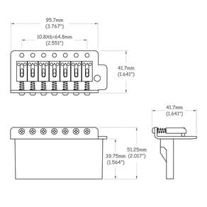 Ponte com Sistema Trêmolo completo para Guitarra de 7 Cordas com acabamento cromado e extremidade em plástico branco, modelo Stratocaster, Spirit Guitar Parts - TSM7-CR-WH. - Estilo Vintage modelo Stratocaster para guitarra de 7 cordas - Alavanca angulável e encaixe removível - Bloco em aço - Espaçamento das cordas 64.8mm