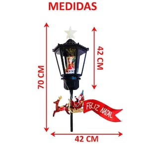 Cores: Vermelho, Preto e Branco;Material: Plástico ABS e Componentes Eletrônicos;Medidas: ;Altura 70x42cm X Largura 23cm;Uso Natalino;Alimentação: Tomada ( Bivolt );Conteúdo Da Embalagem: