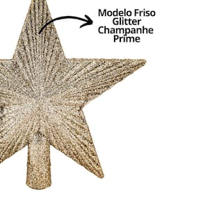 -01 Estrela Ponteira Friso Glitter Champagne 15cm - Magizi